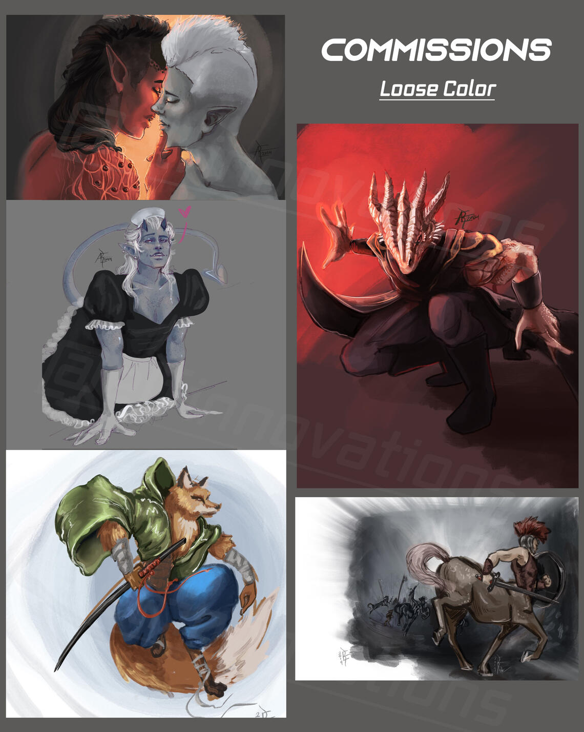 sketch: $75, Loose render : $120, full render: $185Additions